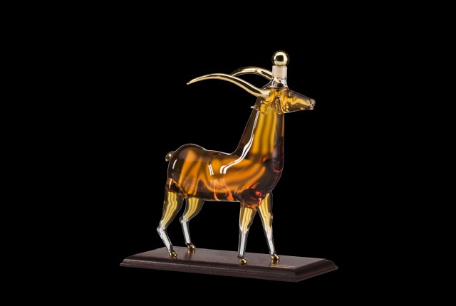 Scultura in vetro soffiato con dettagli in oro, con 35 cl di Grappa Of di Amarone Barrique