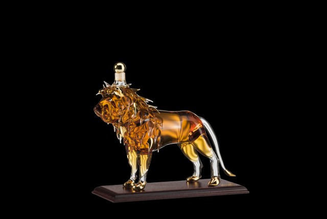 Scultura in vetro soffiato con dettagli in oro, con 35 cl di Grappa Of di Amarone Barrique